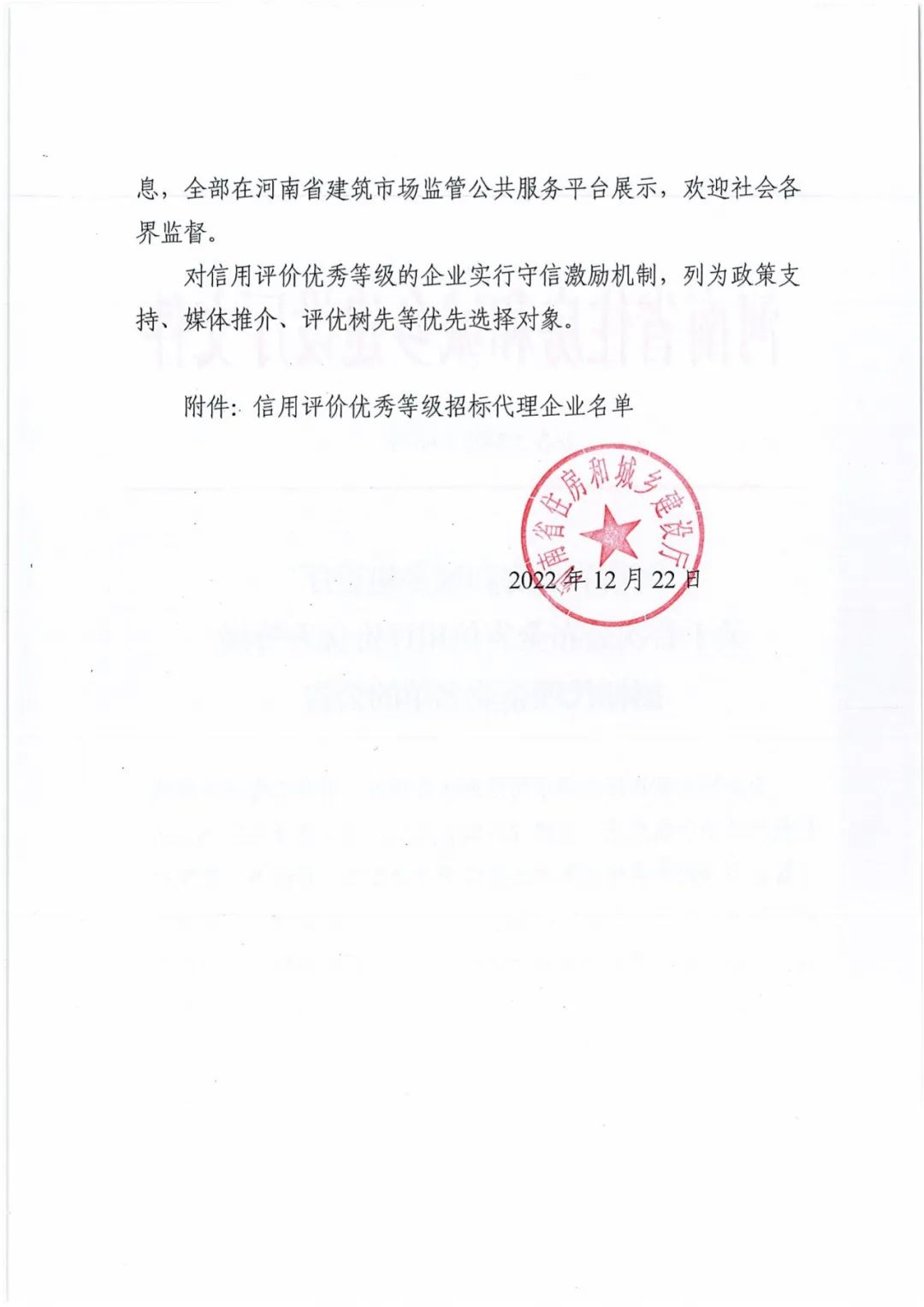 熱烈祝賀我公司獲得河南省住建廳評定“全省信用評價優(yōu)秀等級招標代理“企業(yè)稱號。
